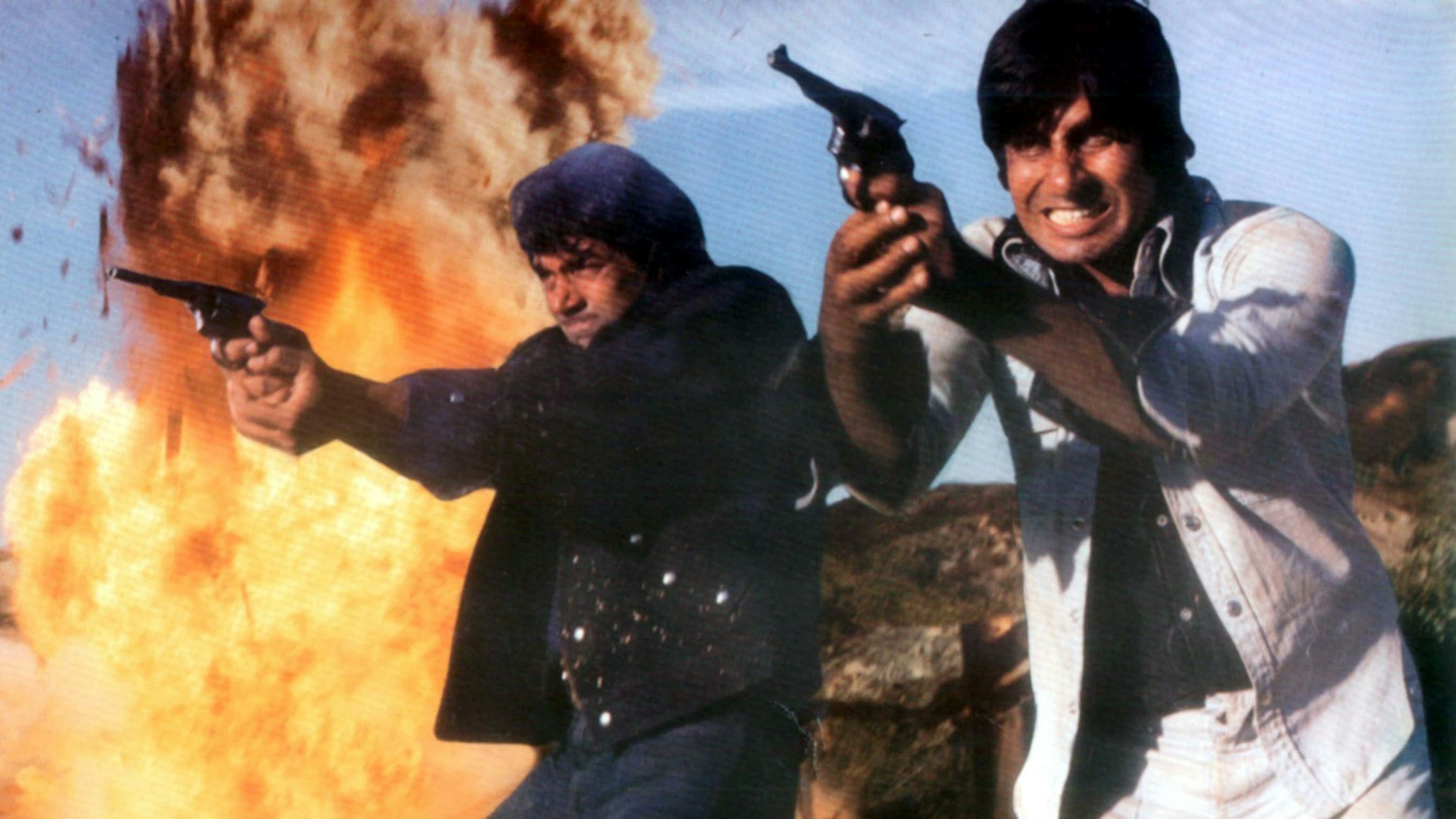 De heruitbreng markeert de bijzondere status van deze Hindiwestern, die tevens de geboorte betekende van twee Indiase supersterrren: Amitabh Bachchan en Amjad Khan. In Sholay nemen de twee het tegen elkaar op als de ruwe-bolster-blanke-pit avonturier Jai (Bachchan) en de brute bandiet Gabbar Singh (Khan).