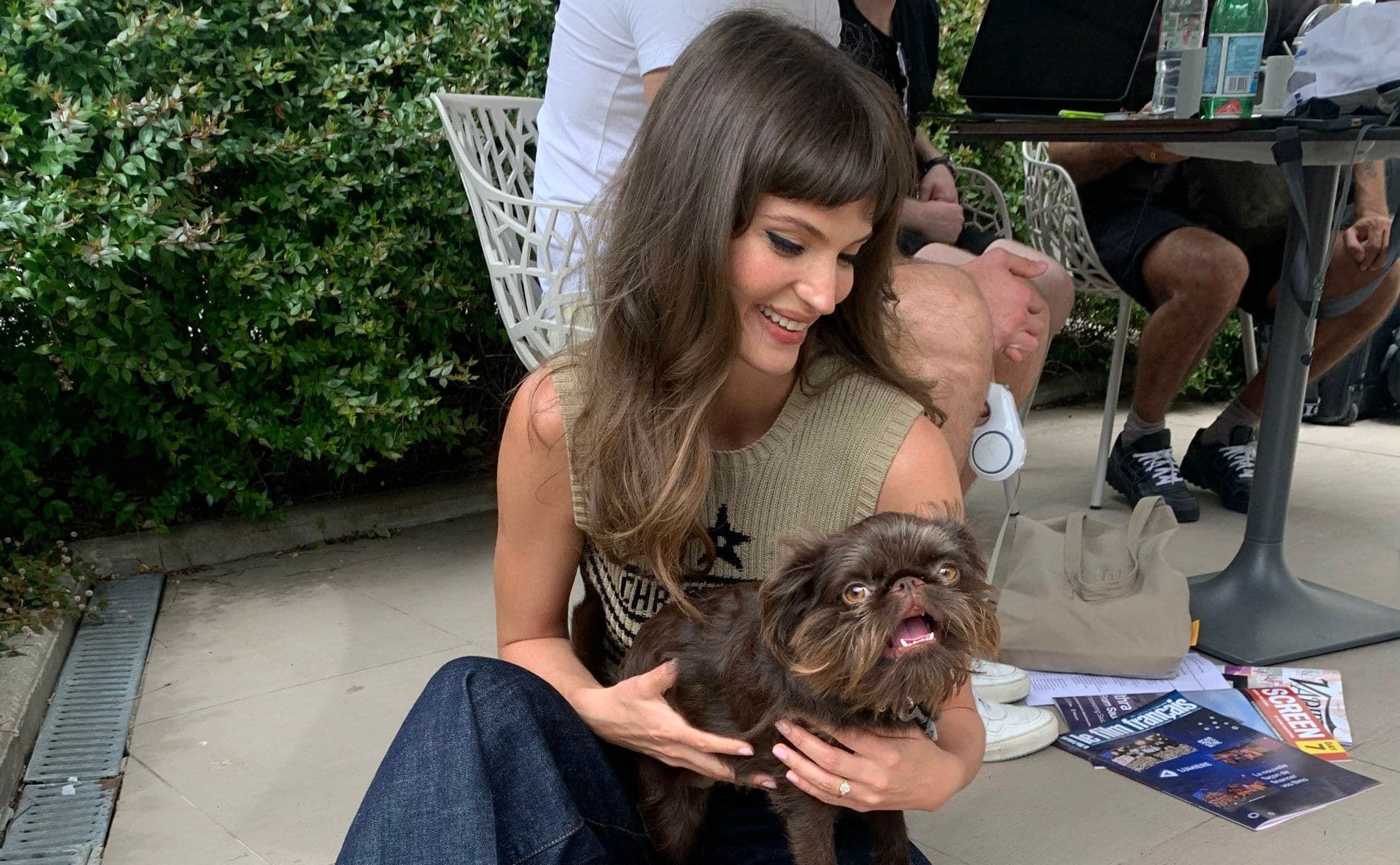 Charlbi Dean met haar hondje in Cannes