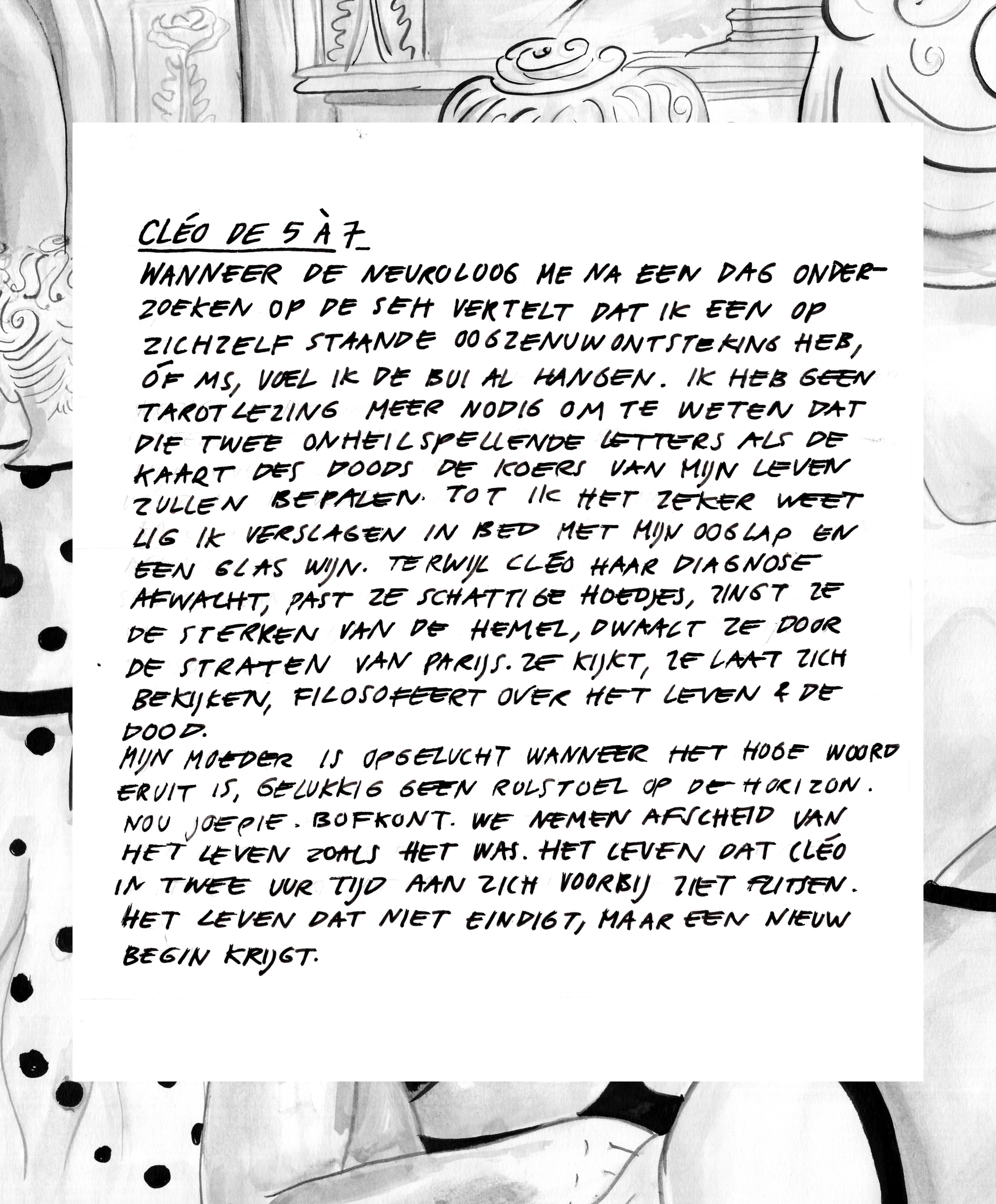 Bij klassieker Cléo de 5 à 7, waarin een jonge vrouw in afwachting is van een onheilspellend doktersbezoek, denkt beeldcolumnist Mathilde Bindervoet terug aan de periode waarin ze hoorde dat ze MS had. 'We nemen afscheid van leven zoals het was. Het leven dat Cléo in twee uur tijd aan zich voorbij ziet flitsen.'