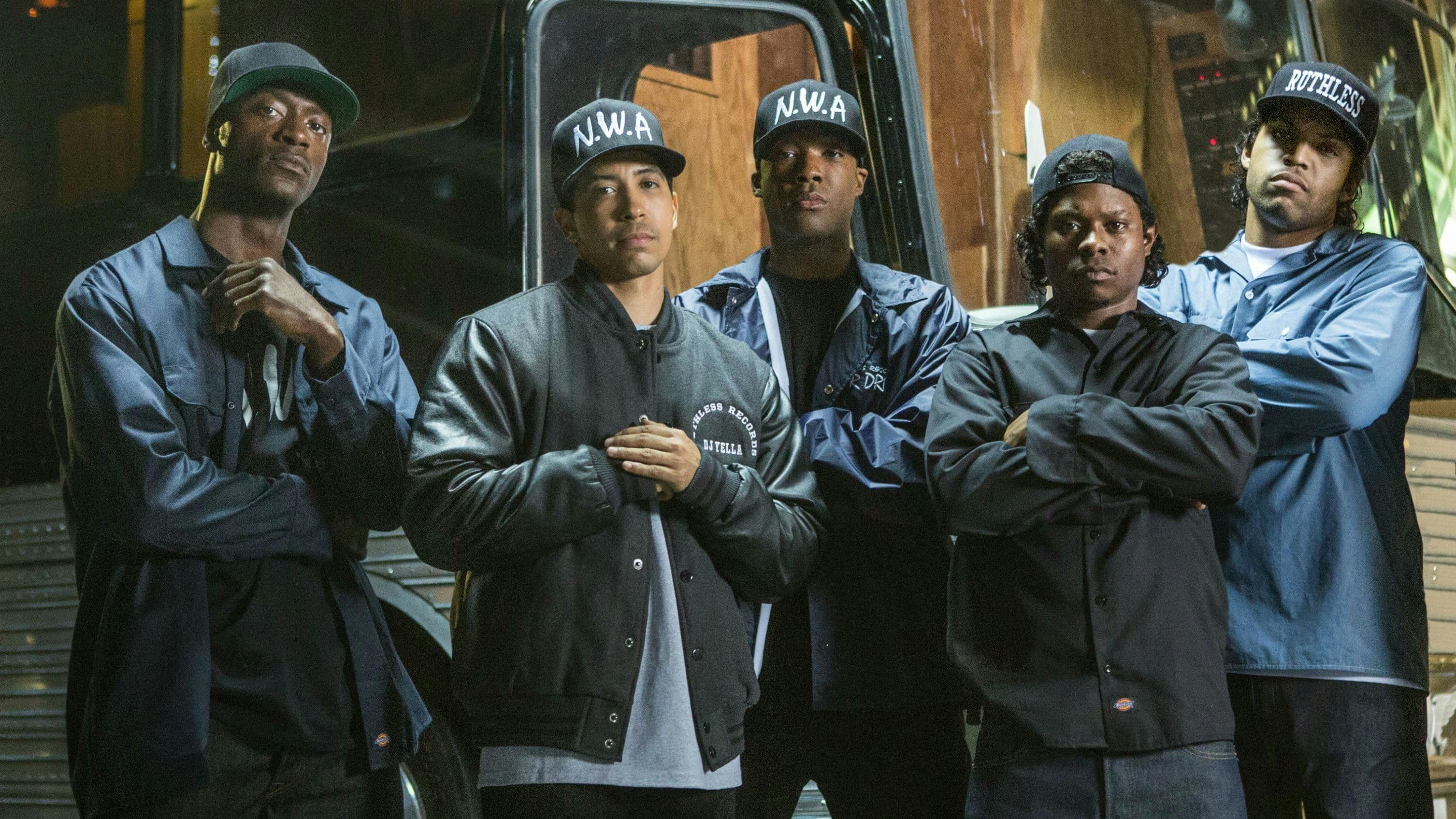 Voor een film van twee uur en twintig minuten over de groep N.W.A is het best gek dat het ontstaan van N.W.A als groep helemaal niet aan bod komt in Straight Outta Compton. Het ene moment staat de kersverse labelbaas Eazy-E met veel moeite een nummer solo in te rappen (omdat de act die het nummer eigenlijk zou opnemen met ruzie uit de studio is vertrokken) en even later – ‘The Boyz-n-the Hood’ is ondertussen een locale hit – vraagt de uitgerangeerde blanke artiestmanager Jerry Heller hem ineens waar de afkorting N.W.A eigenlijk voor staat (‘No Whites Allowed?’).
